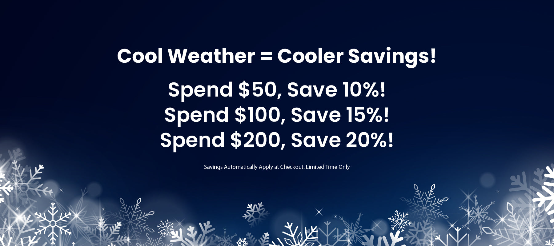 Spend $50, Save 10% | Spend $100, Save 15% | Spend $200, Save 20%